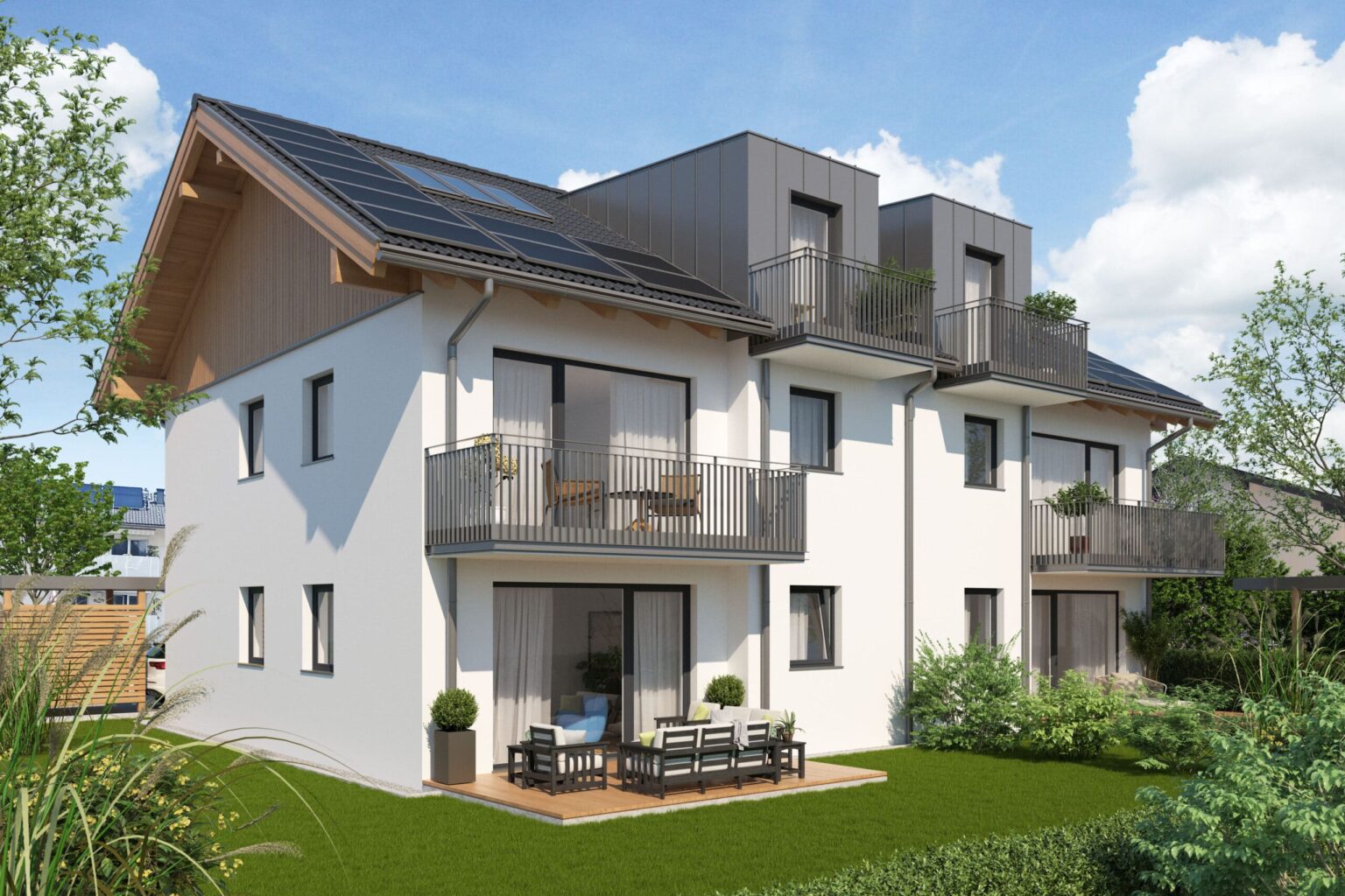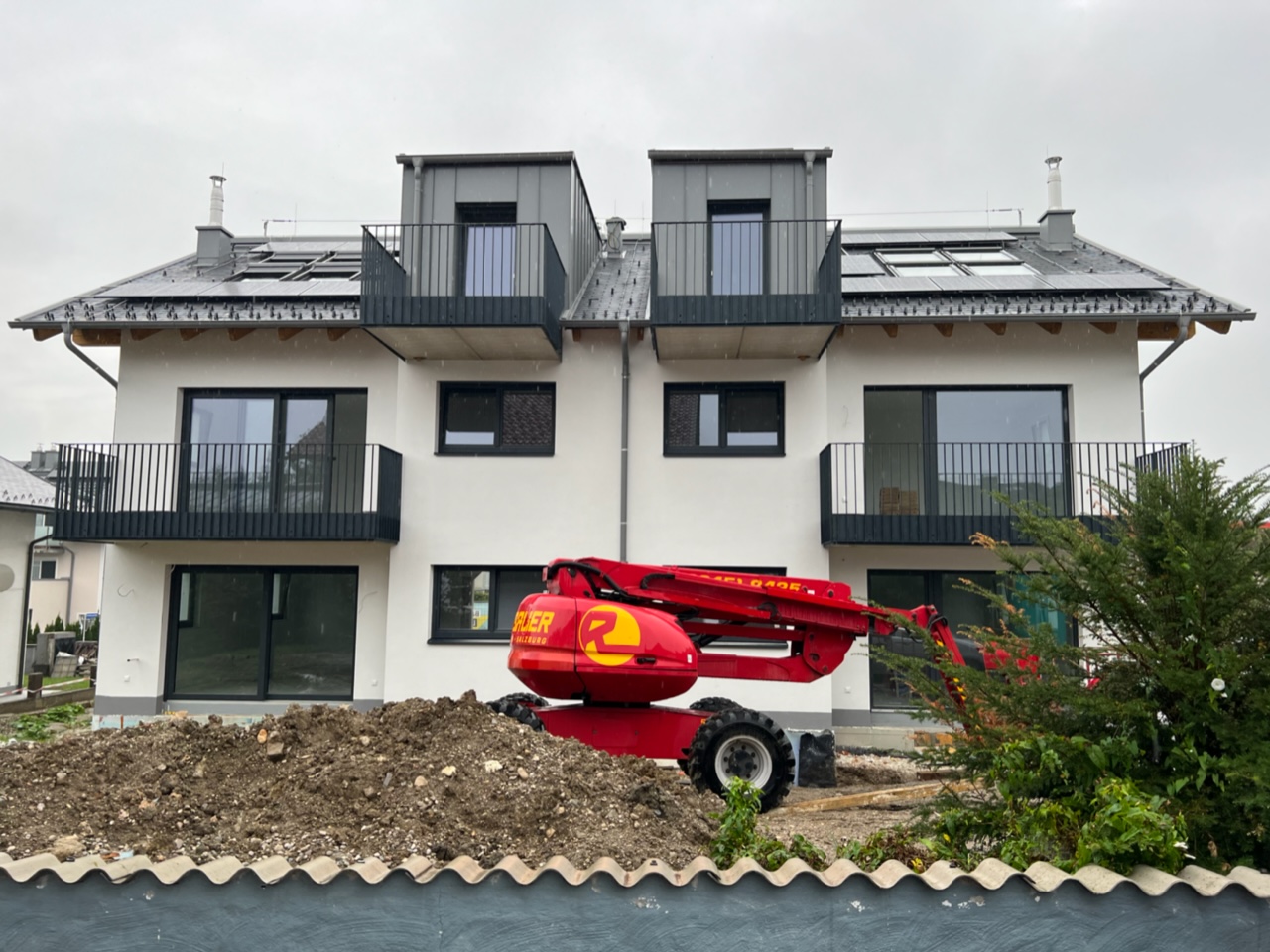 Top modern und trotzdem bodenständig! Im familienfreundlichen Elixhausen entsteht ein kleines, feines Wohnhaus mit nur 4 Eigentumswohnungen. Im Erdgeschoß sind 2 Maisonett-Wohnungen mit großen, sonnigen Gärten, eigenen großen abgemauerten Kellerräumen, die direkt vom Vorraum aus zu begehen sind. Im Dachgeschoß sind 2 moderne Wohnungen mit Wohn-und Schlafbereichen, riesigen Dachflächenfenstern und hübschen Balkonen. Abgerundet wird das Projekt durch eine zukunftsorientierte Wärmepumpenheizung mit Tiefbohrung. Das verspricht niedrigste Energiekosten! Exklusive Ausstattung ist selbstverständlich, von edlen Holzdielenböden über feinste Keramik in den Bädern.