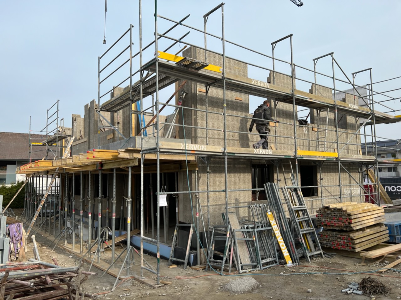 In dieser Phase entsteht die Grundstruktur des Gebäudes. Wände, Decken und tragende Elemente werden errichtet, um die physische Form des Projekts sichtbar zu machen.