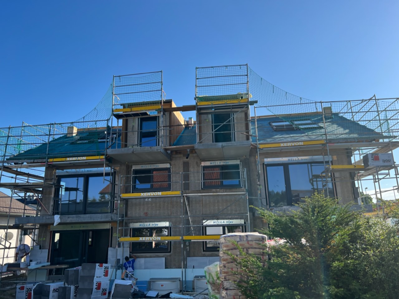 Jetzt bekommt das Gebäude sein äußeres Gesicht. Die Fassade und Fenster werden montiert, was dem Projekt sein endgültiges Erscheinungsbild verleiht und es wetterfest macht.